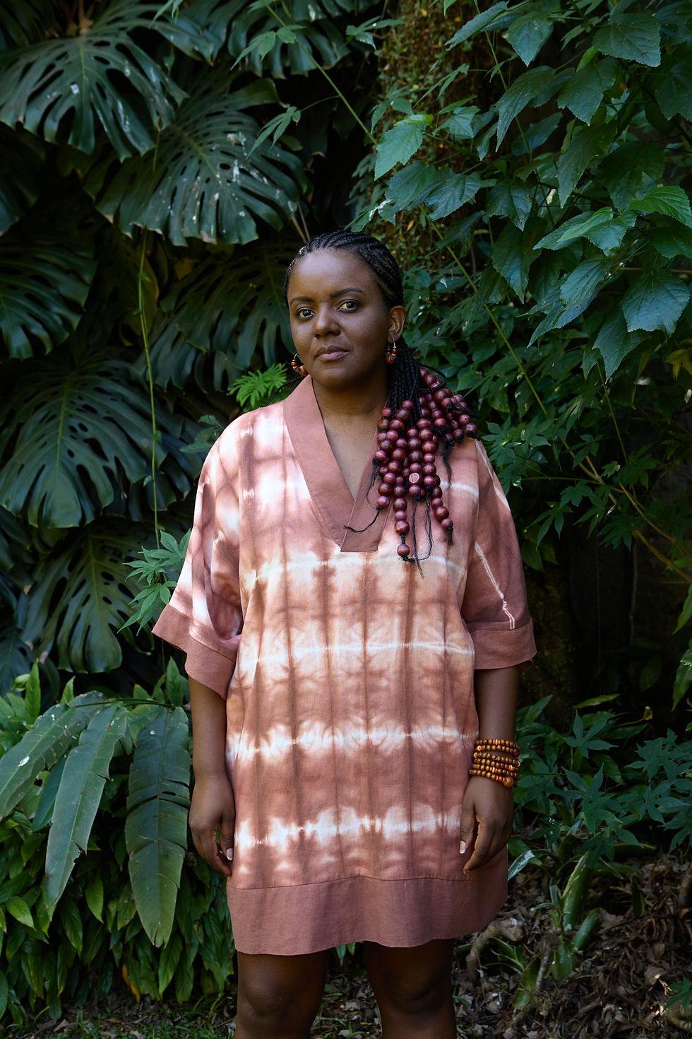 É inspirada no Adire ( técnica de Amarrar e tingir) ancestral e artesanal do povo Yorubá.